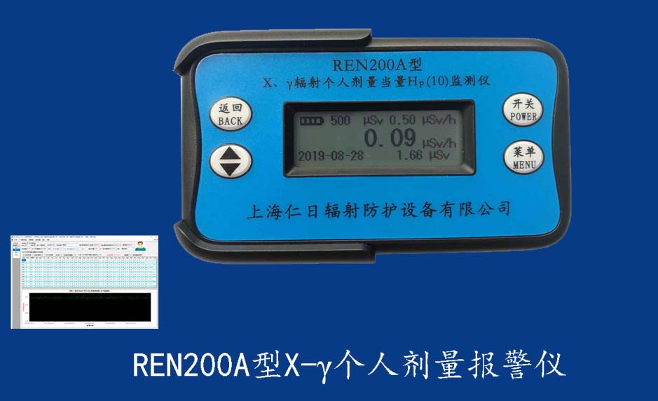 REN200A 個人輻射報警儀REN200A型X、γ輻射個人劑量當量HP(10)監(jiān)測儀(簡稱:個人劑量報警儀)內(nèi)置高靈敏度蓋格計數(shù)管為探測器,主要用來監(jiān)測各種放射性工作場所的X、γ以及硬β射線的輻射,具有響應快,測量范圍寬的特點。能顯示工作場所的劑量當量率和累積劑量,更換電池時,日期及累積數(shù)據(jù)能永久保存。可選配RenRiPersonal個人劑量管理軟件,該軟件可存儲多個人的歷史數(shù)據(jù),能記錄日累積、月累積、年累積、輻照時長、計算平均劑量率、扣除或不扣除本底輻射,且以文字和圖譜的方式展現(xiàn)數(shù)據(jù)。廣泛應用于核電站、加速器、鋼鐵、化工、同位素應用、工業(yè)X、γ無損探傷、放射醫(yī)療、鈷源治療、γ輻照、放射性實驗室、核設施周圍環(huán)境監(jiān)測等領域中的工作人員進行個人安全防護監(jiān)測及放射性提示。&nb